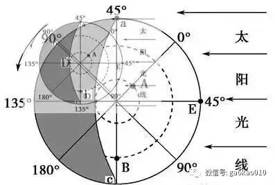 (1)地轴、直射点的太阳光线一定通过地球球心。
